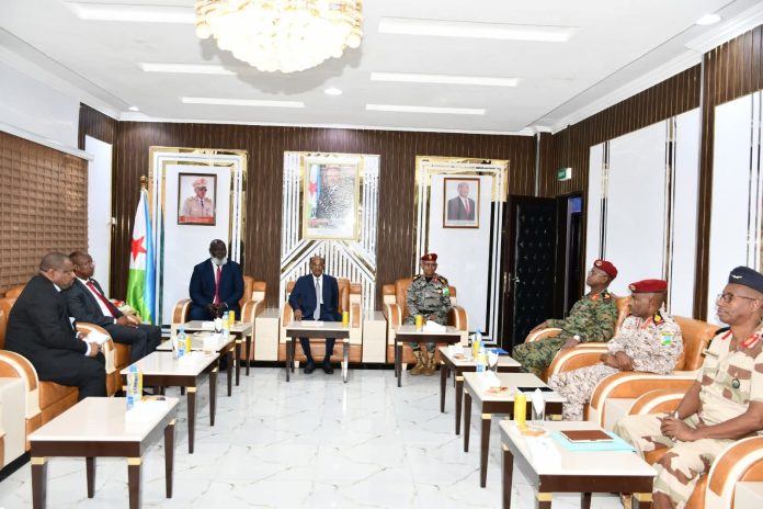 AUSSOM SRCC, H.E. El Hadji Ibrahima Diene, accompanied by Deputy SRCC, H.E. Mouktar Osman Karie, paid a courtesy visit to the Minister of Defence in charge of Relations with Parliament of the Republic of Djibouti, Hon. Hassan Omar Mohamed Bourhan, and the Chief General Staff, Lt. Gen. Zakaria Cheick Ibrahim.