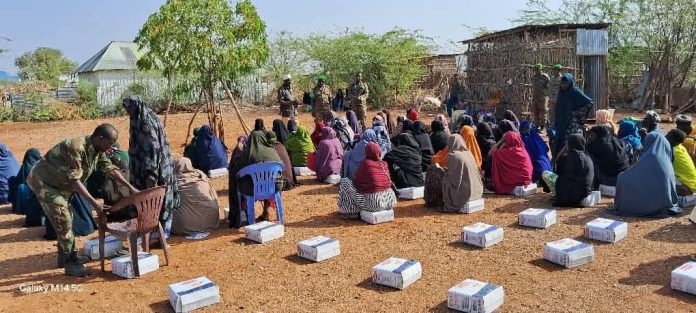 AUSSOM ENDF troops have donated foodstuffs to 100 vulnerable families in Gedo’s Buurdhuubo district as part of efforts to address the worsening humanitarian crisis in Somalia.