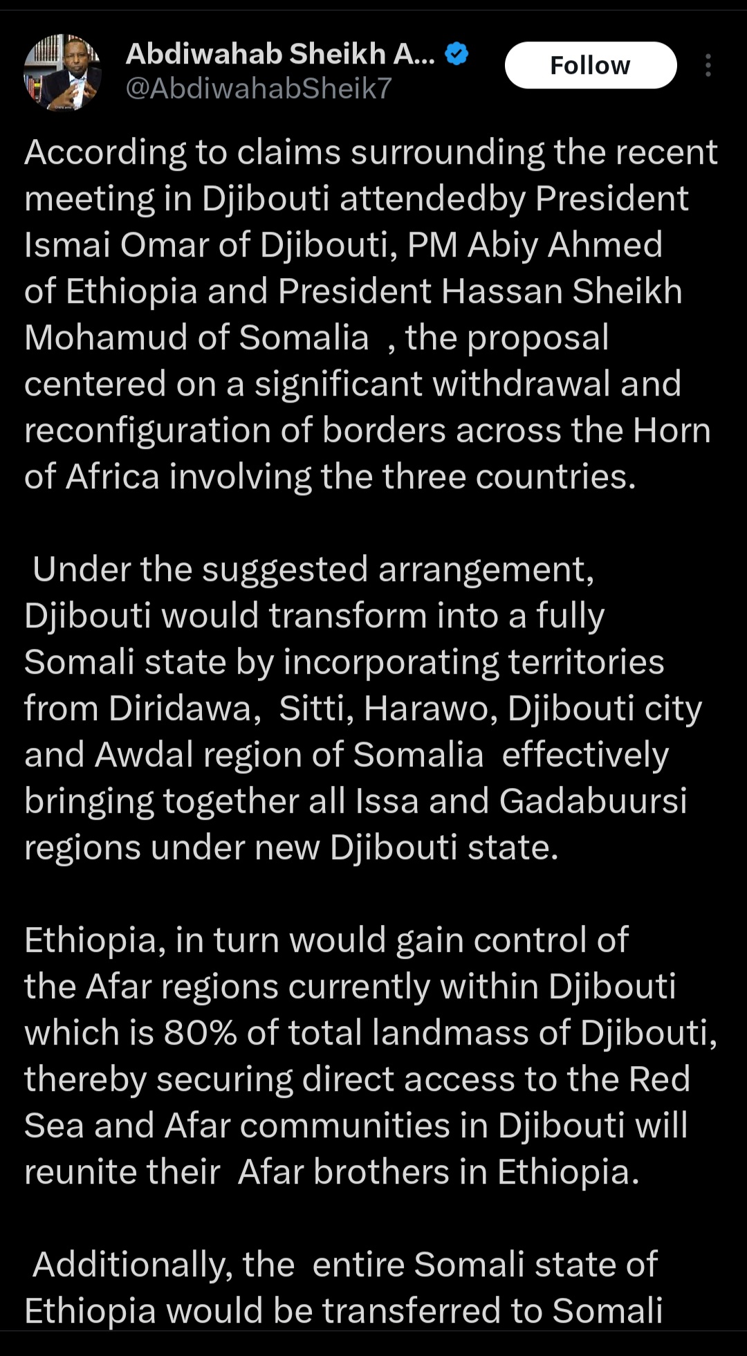 A recent meeting between the three leaders of Somalia, Ethiopia and Djibouti have decided to redraw the borders between their countries.