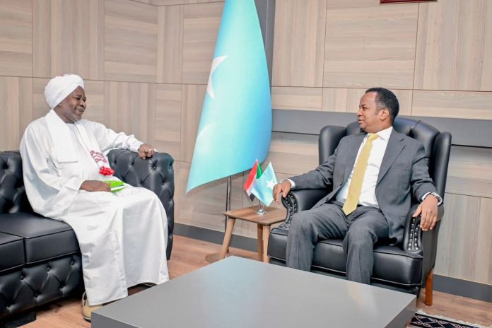 Somalia’s Minister of Foreign Affairs and International Cooperation, Abdisalam Ali , today received the Ambassador of the Republic of Sudan to Somalia, H.E. Abdularahman Khalil Ahmed Abubakar, who paid a visit at the Minister’s office in Mogadishu.