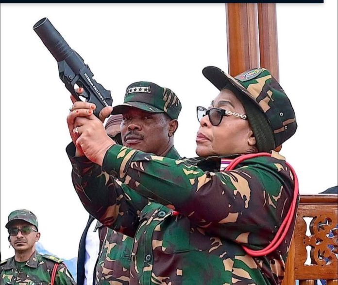 President of Tanzania, Samia Suluhu Hassan, fired shots from a pistol to celebrate the groundbreaking of the National Defense Command Center (MMUT) in the capital, Dodoma, on Tuesday.
