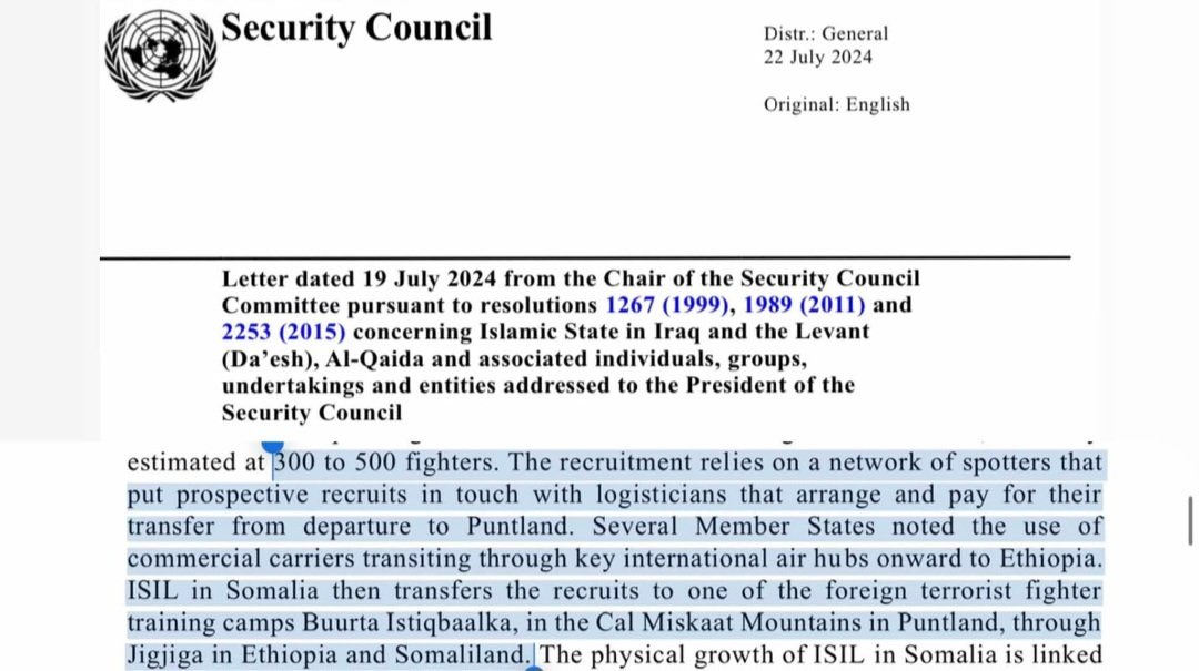 The Security Council report identifies secessionist Somaliland as a key transit hub in the movement of ISIS foreign fighters into Somalia.